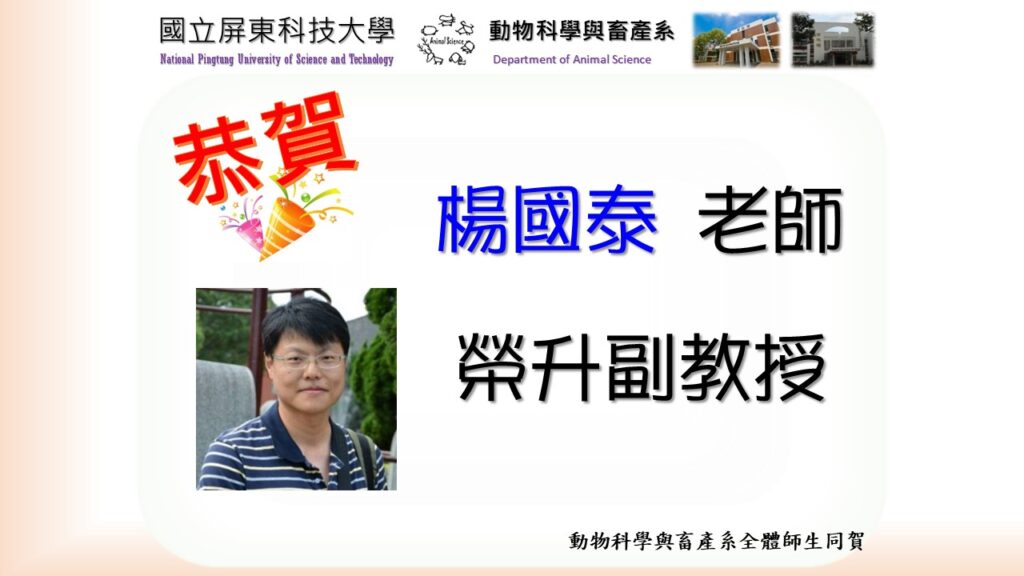 恭賀本系楊國泰老師通過114學年度第1學期升等為副教授